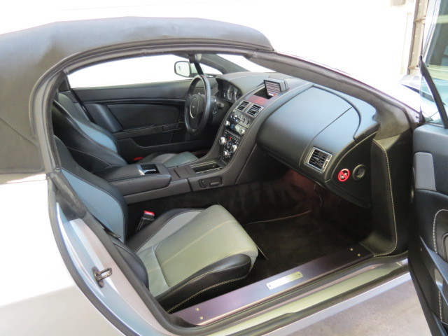 Aston Martin Vantage Roadster Convertible, This Silver all Grey/Blk Leather has a 4.7Liter V8 Engine, the performance is 420hp with a 6 Speed Sportshift I Automated Manual Transmission, Standard Features Consist of Anti Lock Braking System, Dynamic Stability Control, Electronic Brakeforce Distribution, Emergency Brake Assist, Hydraulic Brake Assist, Hill Start Assist, also come equipped with a 4 Wheel Ventilated, grooved disk brakes, Electrically adjustable front seats, power windows, power fold mirrors, Bluetooth, Aston Martin 160w Audio System with Integrated Ipod, USB, and Auxiliary 3.5mm Connection, Satellite Radio. As Optional Equipment this Roadster is equipped with Silver Brake Calipers, Leather Heated Front Seats, Fine Stitching, Memory Seats, Clear Rear Lamps, and 19inch Wheels.
