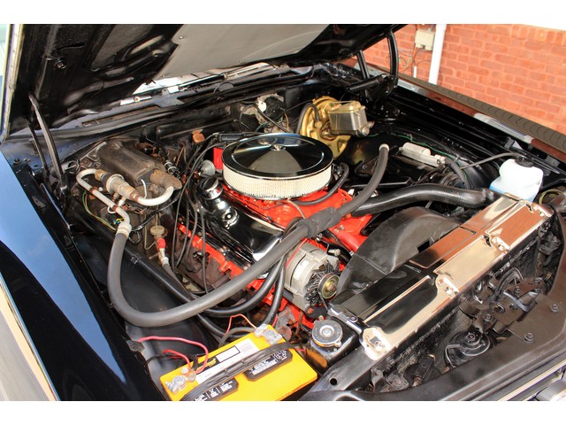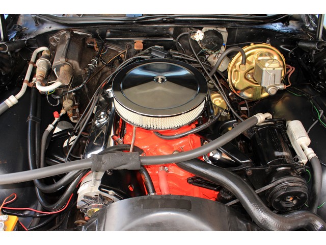 Finally, we will take a look at the heartbeat of the Chevy. Under the hood it’s powered by a 402 Big Block that’s dressed well with aluminum intake and chrome valve covers and breather. The engine is mated to a 400 Turbo Trans and a 12 Bolt Rear End. The exhaust runs through stock manifolds and a set of dual flow masters. This is a factory AC car that works and it also has Power Steering and Power Disc Brakes. When you look under this car it’s rock solid with good floors and frame.