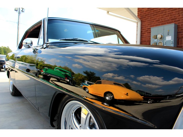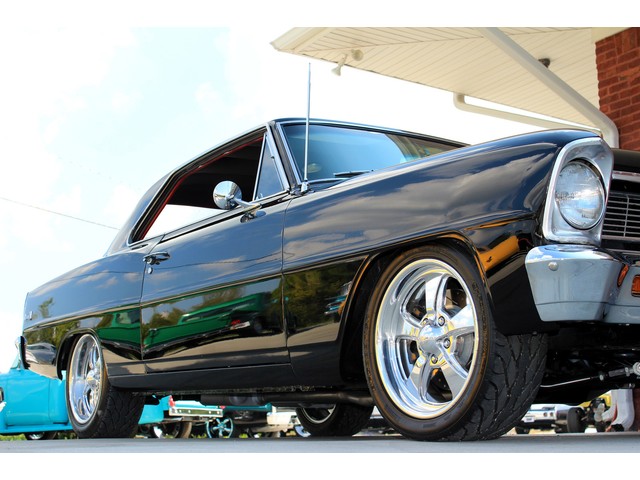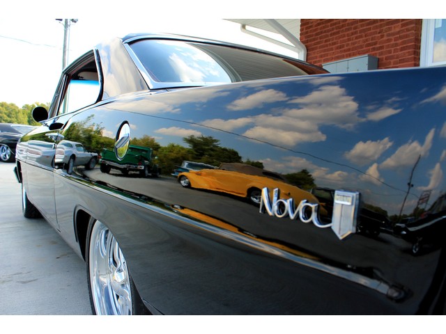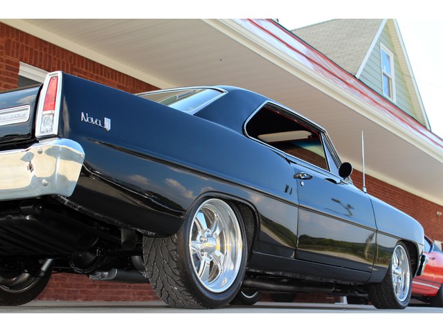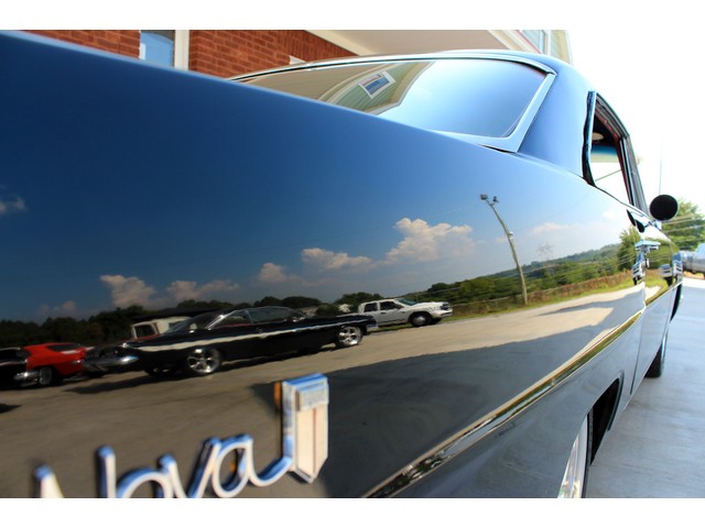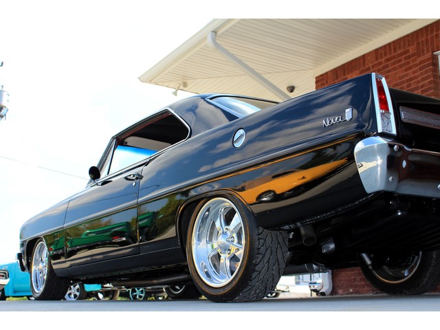 We will start off with the exterior of the Nova. The body on it is awesome with laser straight lines and great fit of the panels. Everything is covered in the Tuxedo Black Paint that looks great and has a deep rich shine that is smooth to the touch. It’s accented by the new bumpers along with other new chrome. The stainless looks great and at the time of the resto they installed new weather stripping and seals. The glass in this car is like new. To give it a new look it’s fitted with a set of Billet Specialty Wheels with new tires.