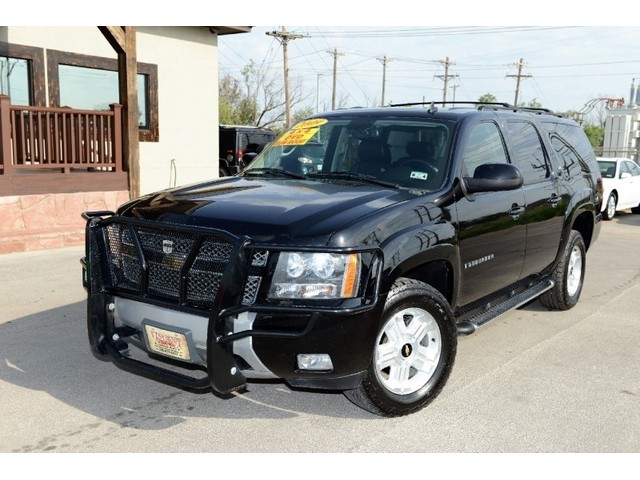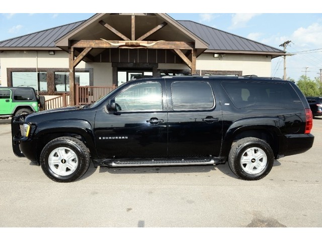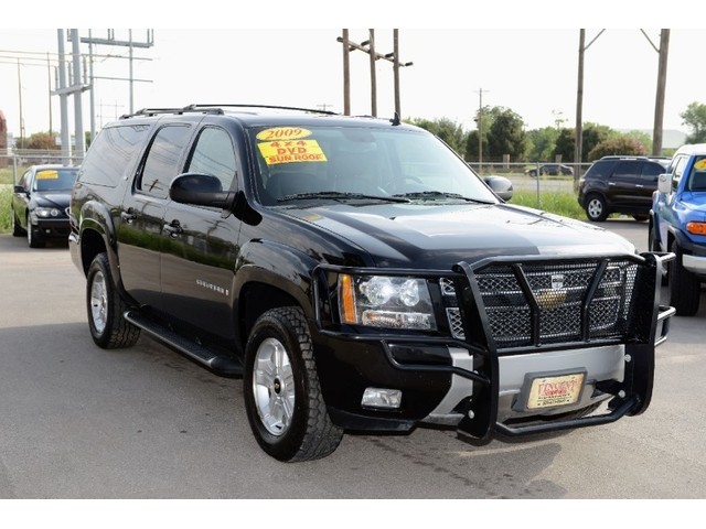 2009 Chevy Suburban Z71 4x4 This SUV has the (5.3LV8) The exterior is black witha black interior, leather 7 passenger quad bucket seating, dual power seats, power windos, power locks, power mirrors, cruise,audio,and bluetooth on steering, AM/FM,cd,aux,sat,Navigation, dual climate, dual heated seats, 2 position driver seat memory, dvd, sunroof, side steps, grille guard, rear tow packa, tow haul, back up camera, luggage rack, power lift gate, fog lights, and more... Come by today for a test drive. We are located at the corner of treadaway and industrial.