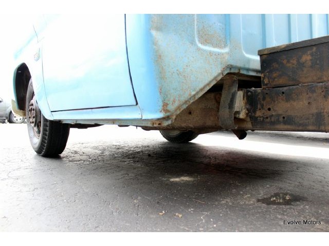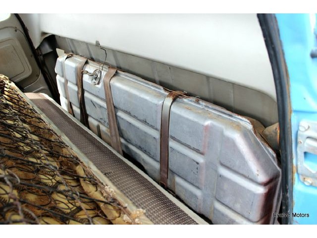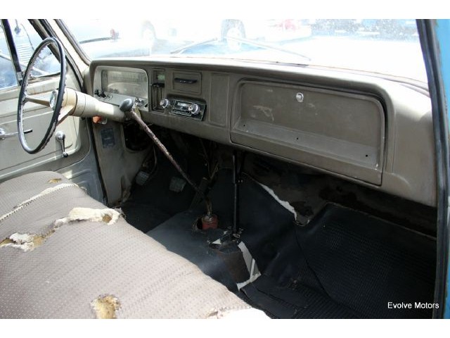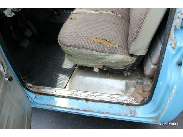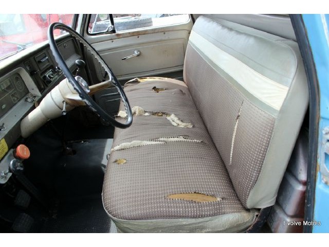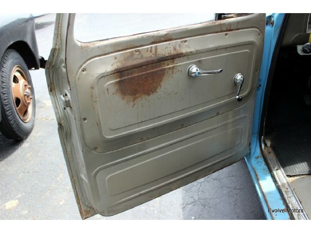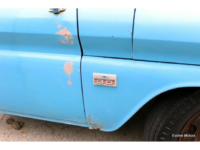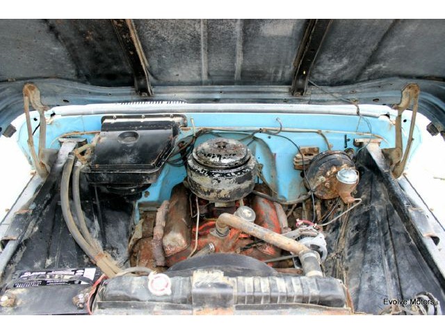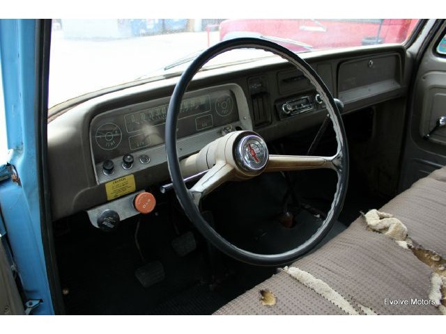 A Kansas farm truck for most of it's life, this C30 features a dump bed on it with a rear gate designed to drop feed or smaller portions of a load. The hydraulic lift ram is a later add on but otherwise the truck is near original. The cab of the truck still wears it's original baby blue paint and does show a few blemishes but is very rust free and clean overall. Opening the door to the interior reveals solid and original rockers and floor boards. The seat does need to be recovered but can be done for relatively cheap. The stark interior is very simple but functional. The gauges are clear and fully functional as well as the window cranks and other accessories.