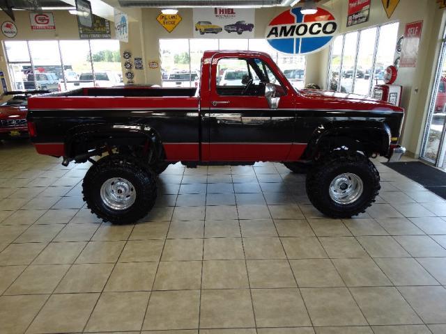 Good luck and please enjoy our other vehicles by seeing our other auctions! Please remember, you are bidding to buy, not to look. Please be sure to read through the entire ad before bidding. Read the Terms and Conditions and see the Condition Report. Personal and Professional inspections are welcomed and encouraged at our dealership, Before the close of the auction. All vehicles are subject to a $149 Documentation Fee, including dealers! Please call us at 563-659-9309 if you have any additional questions. Good Luck! Condition Notes: Very Nice – DRIVER QUALITY MONSTER TRUCK! RARE SHORT BED!!! Nice paint, with just a few small imperfections from normal driving. Slight paint scratch/crack on lower rocker panel on passenger side box side. Original Small Block - Manual Transmission Truck - Now: BIG-BLOCK - Automatic Transmission. Tires: TSL 38x14.5x16.5LT Slightly Weathered – See Pictures for exact tread depth. Please call or email with specific condition questions.