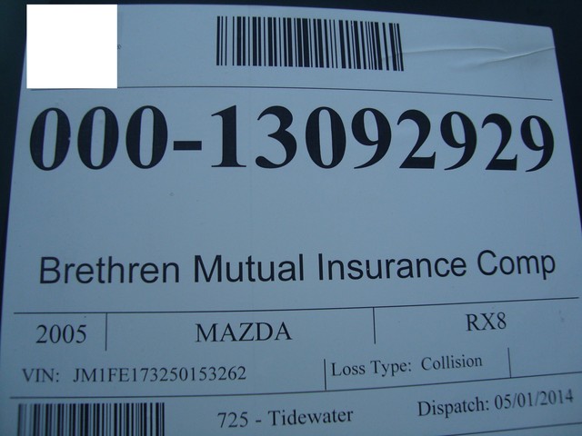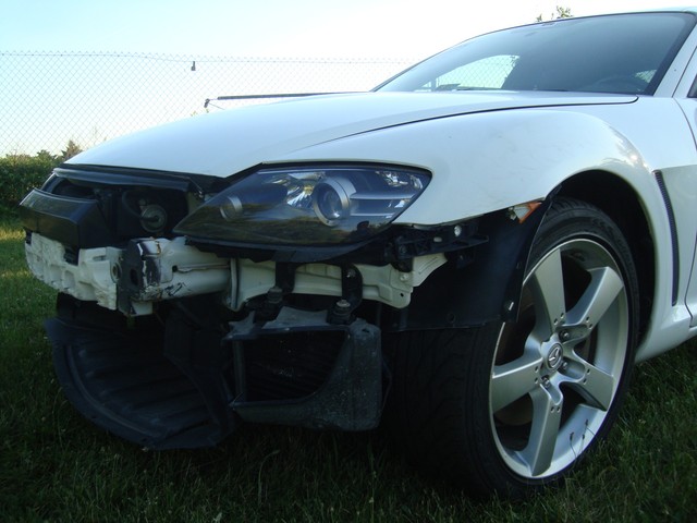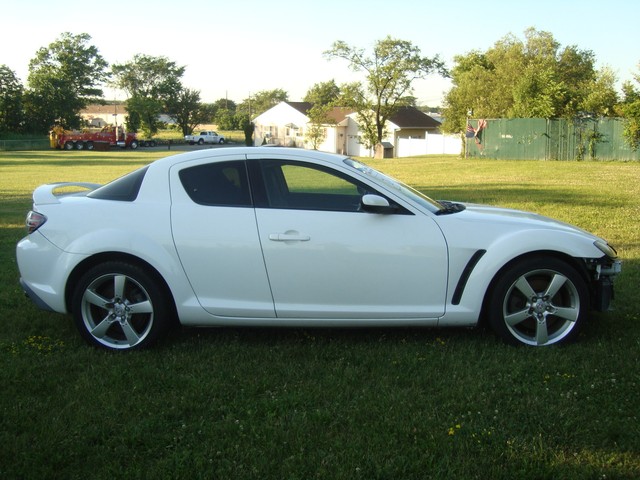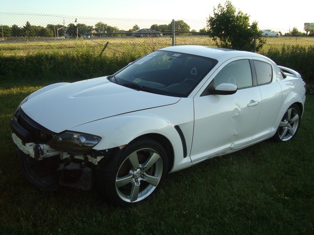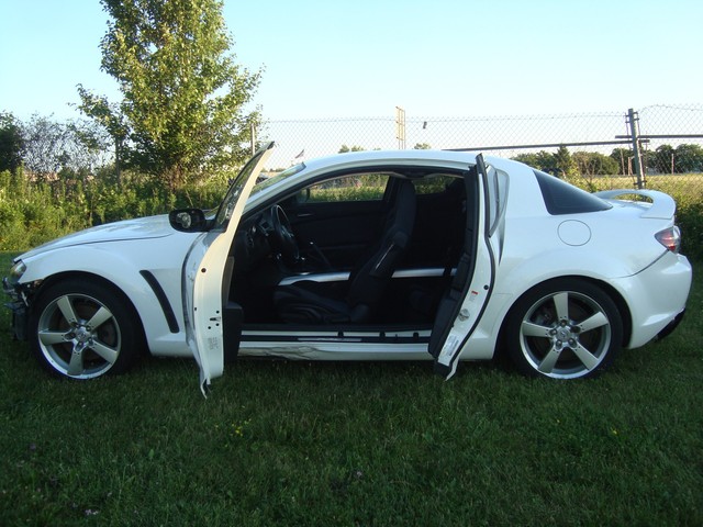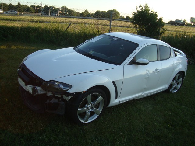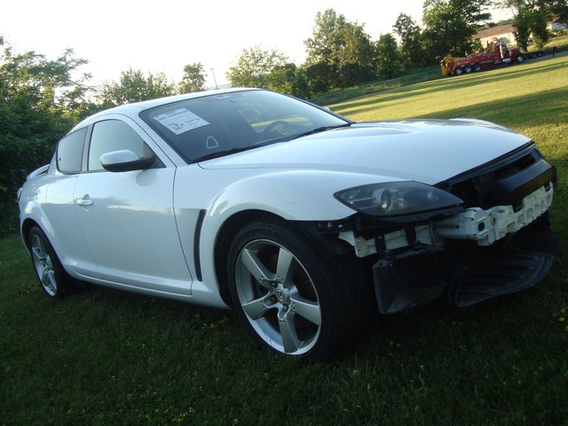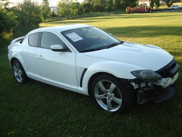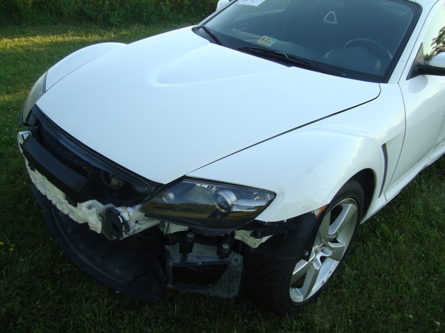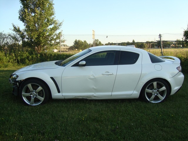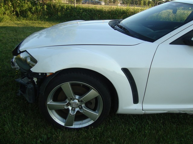 As seen in the pictures down below this nice looking 2005 Mazda RX8 6-Speed manual with only 72k miles has mainly sustained a very light left side damage. Front end is only missing the bumper cover. This vehicle was directly purchased from insurance auctions for resale in the condition you see it on the pics. No middle man involved. We have the salvage certificate of title (no-liens) at hand and ready to transfer to the new owner. Such vehicles can be legally returned back to the roads after repairs and your state motor vehicles inspection. Damaged areas are clearly shown in the pictures below. Looks like it took a light bump to the left driver door and rocker has fixable dent underneath. No undercarriage damage. Front end has no major damage, only the bumper cover is missing. Left headlight/fender might need slight adjustment. Front frame rails are straight and looks like the bumper did not absorb any real damage. Just install a new bumper assembly and with minor adjustments front end should be back to normal. No damage to the front end cooling components (radiator, condensor, fanst, etc) are all in tact. The AC blows cold air. No leaks observed from the front end cooling components. Only the left roof (curtain) and driver seat airbags are deployed. Get used airbags and other needed parts easily here on ebay or at online junk yard website car-part.com. Each airbag should not cost more than $150 or so. The great news is that the car starts, engine runs great, goes into gear and we are able to drive it around within our lot.Left rear wheel is out of alighment due to a bent tie rod. Its a very easily fixable part (a thin rod ) easily available here on ebay for a few bucks. The left wheel probably hit a curb during the accident and bent the rod, its very common on such side damages but not a major suspension work. No major mechanical damage observed on this vehicle. The rest of the exterior is in good condition with great looking paint but some light scuff marks/scratches and the obvious bump to the rear bumper cover. (see pics below). Right rear taillhgt mouinting tabs are broken. Interior is clean and is as seen in the photos below. Has upgraded Clarion aftermarket touchscreen cd/dvd/sirius, radio, cd, etc. Comes with the extra large sport 18" sport alloys. Overall, it should be a fairly easy fixer with light body work maily to the left rocker under the driver door and minimal parts needed. Only 72k miles! Please see many pictures posted down below for overall condition of the vehicle and feel free to ask any questions you might have.