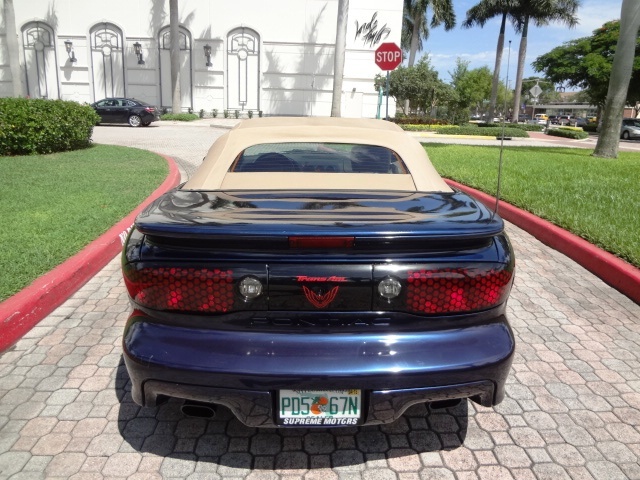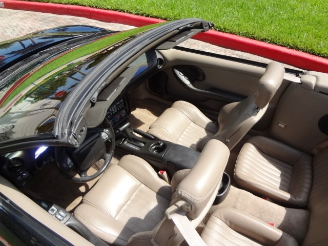 This 2001 Pontiac Trans Am is fully loaded with all the options including: Full Power Package, Traction Control, Automatic Transmission, Power Seats, Leather Interior, Premium CD Soundsystem, Power Convertible Top, Hard Cover Boot for Convertible Top (when down), Alloy Wheels, and Much Much More. This car is a Real Stunner. The engine and transmission are running smooth. The 5.7 Liter LS-1 Engine is Super Strong and puts out plenty of power. This car drives nice and straight down the highway. It's a real pleasure to drive. The exterior is immaculate. The paint shines beautifully and the body is super straight. The interior is pristine. The leather seats and carpet are very fresh. This car has been babied and driven very easily thoughout its life. The condition proves it. The tires are almost new. This car has two keys with remotes, orginal owner's manual, and floor mats to go with it. The hard toneau cover or convertible top boot has the factory carrying case to go with it as well. This car is all the way there. There are a couple small blemishes from normal wear and tear. There is two small spots on the deck lid where the clear coat is starting to fade. That is it. This car is Gorgeous. Runs and Looks Beautiful. Don't let it get away. We will price this vehicle to sell. Don't hesitate to call with any questions or concerns. We are happy to help at any time. Please call Jeff or Ken at 954-561-2499 or email us at usedcars@suprememotorsfla.com.