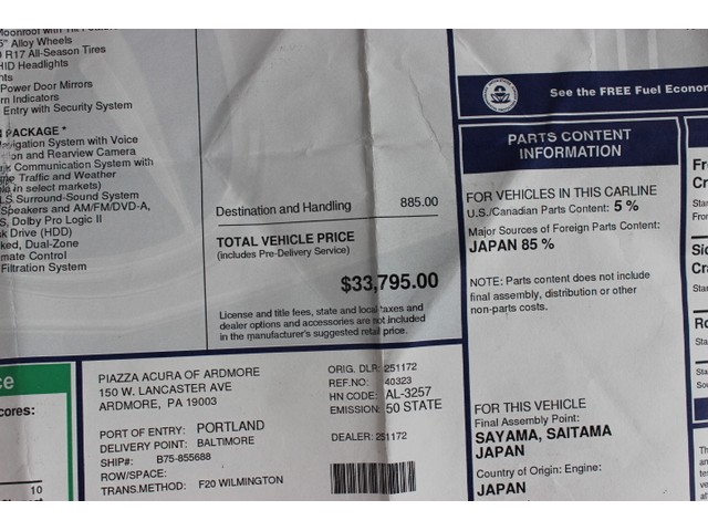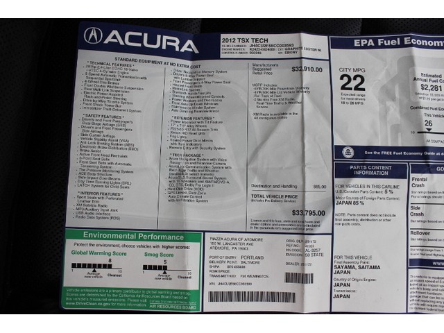 FOR SALE 2012 Acura TSX with only 21k miles! Metallic Grey exterior, with a Heated Black Leather interior! This car runs and drives great with no mechanical issues and no broken glass. The only thing wrong with this car is the hail dents on the hood, roof,trunk, and a few on the sides. Look closly at the pictures I tried to show all the dents that I found on the car. We are selling the car as is just how we bought it from the insurance company. These dents will in no way affect the performance of the car, making it as good a car as any other on the road. Some of the features include keyless entry remotes, steering wheel controls, Navigation, Backup Camera, Auto Lights, HID headlights, Fog Lights, Sun Roof, Heated Leather Seats, Dual Power front seats, and auto dimming mirriors. Take a look at the interior pictures. I tried to include detailed pictures of all the features. If you want a list of all the Features please call the Nissan Dealer, because this car is LOADED Sold with a PA Salvage title. Thanks for looking and happy bidding =)