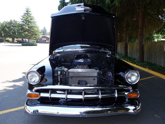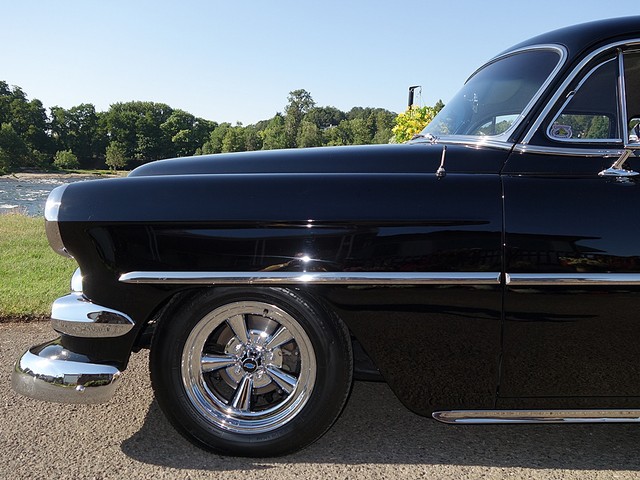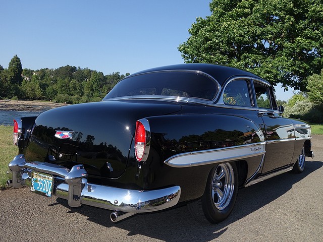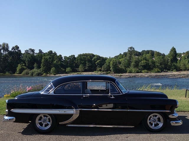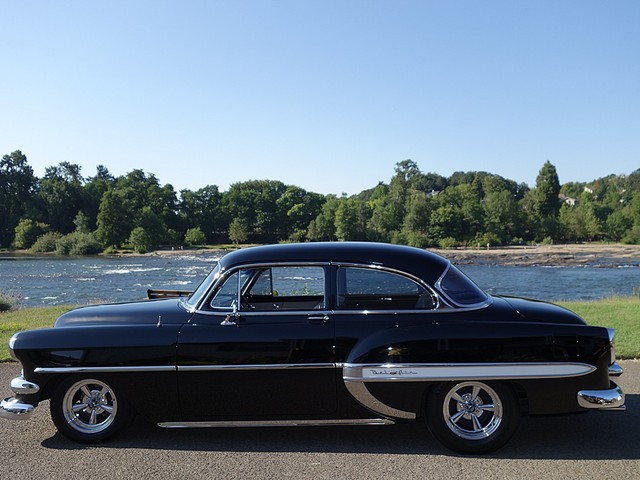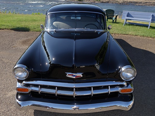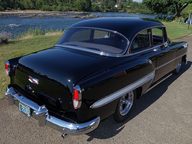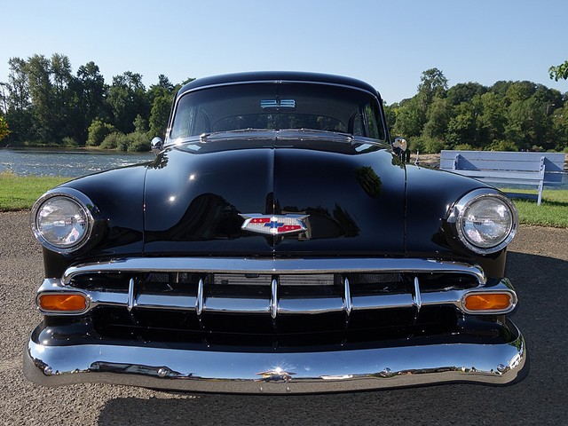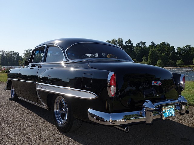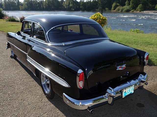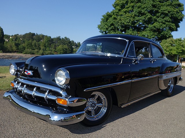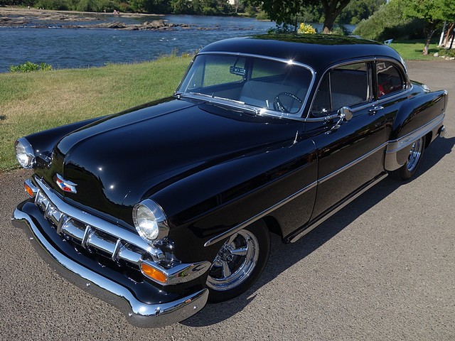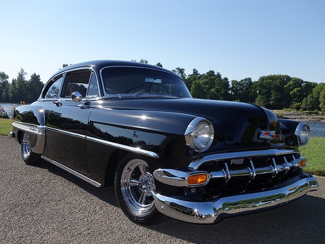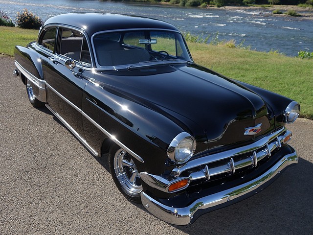 Awesome 1954 Chevrolet 2 Door Sedan. Breathtaking Black paint polished to perfection! Very comfortable to drive with Gray cloth interior, chrome tilt column, custom steering wheel, and Alpine sound system.