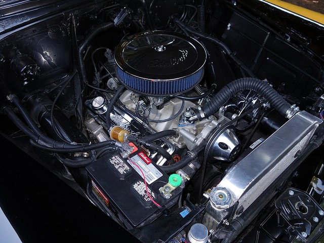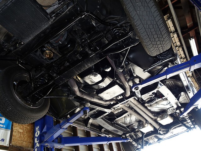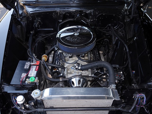 Runs excellent with the 330hp 350 V8 crate engine with Edelbrock intake and carburetor, Griffin radiator with 3100 CFM fan, and TH350 Automatic transmission. Drives super nice down the road with the Mustang II Power Rack steering with power disc brakes.