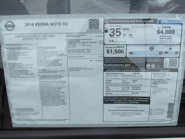 ON NEW -MUST FINANCE WITH NMAC OR LOSE $2000 of the New Car discounts. Online pricing includes $1000 August - September Retail Owner Communication Program.please check with dealer to confirm your eligibility. Online discounts apply to retail purchases leases may vary. Out of state pricing may vary and will be assessed a convenience fee of $185 for title processing and tag work. CALL (888) 706-2134 to verify. Sales Tax Title License Fee Registration Fee Finance Charges and $699 Dealer Fee are additional to the advertised price. We make every effort to have accurate pricing but occasionally mistakes occur. Please call if you have any questions. OUT OF STATE pricing may vary due to rebate variances. - - - 2014 Nissan Versa Note 5dr HB CVT 1.6 SV