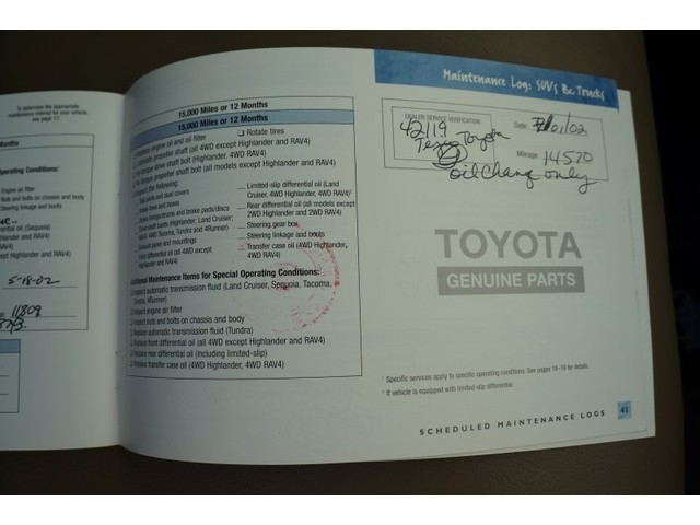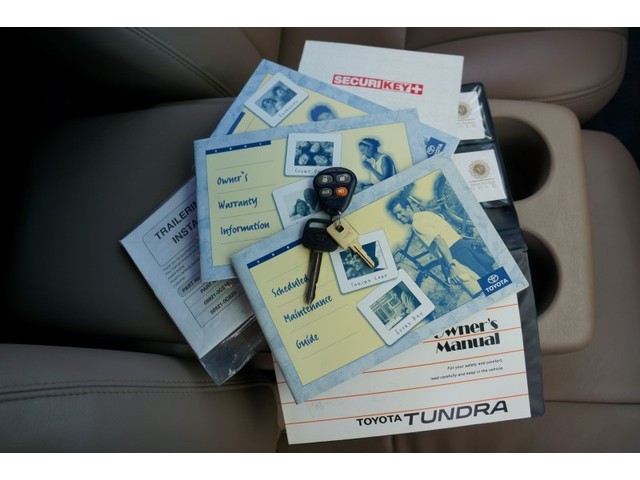 It is fully equipped with the SR5 TRD OFF Road Trim, V8 Engine, 4WD, Leather Seats, CD/Tape Player, Running Boards, Bed Cover, and rear hitch. Both Keyless remotes come with this vehicle. All the Manuals come with this vehicle and as you can see there is some records also. As you can see in the photos, Aftermarket Wheels are installed and it really make this Tundra Stand out.