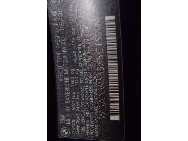 | |  | Year: 2008 |  | Make: BMW |  | Model: 5-Series |  | VIN: WBANW535X8CT55144 |  | Stock Number: P1006 |  | Mileage: 52724 |  | Transmission: Automatic |  | Engine: 8 Cylinder, 5.0 L |  | Exterior Color: Black |  | Interior Color: Tan |  | Title: Clear |