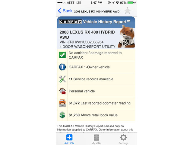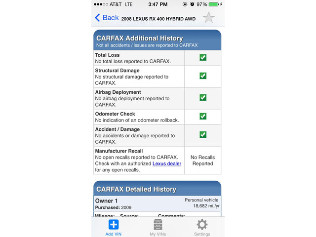 Record CheckDon't buy a used car without CARFAX®! The first step to protecting yourself against buying used cars with costly hidden problems. CARFAX® searches its nationwide database and provides a detailed vehicle history report in seconds.