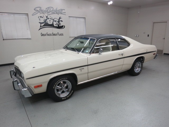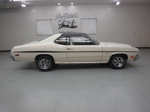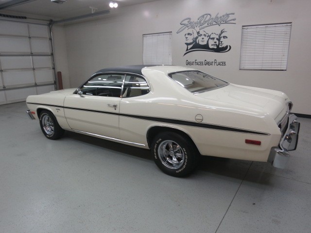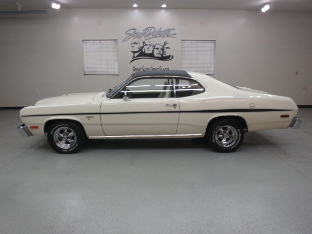 1976 Plymouth "Duster" 2 Dr. Hardtop was the "final" year of production. Very collectible and rare !!... in high gloss "Alpine White" factory color.The White bucket seat interior seating, dash, and trim are all excellent as our pictures show. The engine and compartment are fine detailed and detail correct to year and model. Powered by the freshly rebuilt 318 C.I./ 230 H.P. V-8 w/ 904 code TorqueFlite Auto. Trans. w/ floor shifter and storage console. This is a very nice, "quality" driver and a last year production vehicle. Rare in this sharp and great running condition ready to enjoy !!.. Equipped with : factory "COLD" air conditioning / heater/ defroster, pwr. steering, pwr. brakes, bucket seats, fac. am radio, gauge instruments, front lap & shoulder/ rear seat belts, drivers side remote mirror, spare tire / jack, dual exhaust w/ flare tip's, mag wheels, O.W.L. radial tires and more !! Sale priced with finance options w/ approved , good credit.