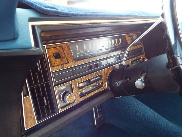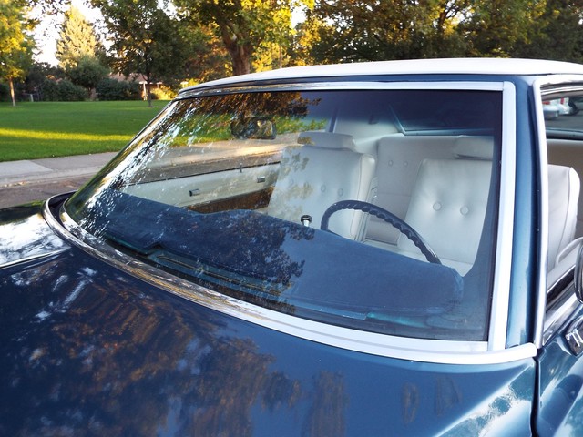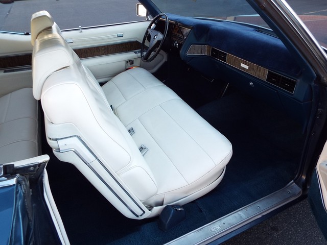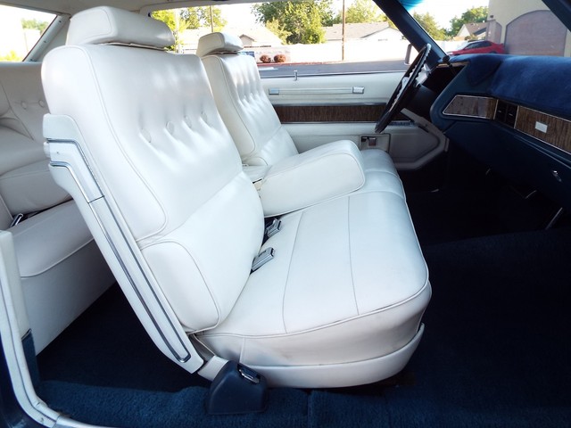 At the heart of this BEAUTY is a NEW - "GROUND POUNDING" - 472 CID V8 (10:1 Compression / 375 Horsepower !! ) crate motor that has less than 1000 miles on it and is running extremely well. The motor also still retains the ORIGINAL 4 barrel intake manifold, ORIGINAL exhaust manifolds, ORIGINAL valve covers, ORIGINAL air cleaner housing and the ORIGINAL Rochester 4 barrel carb. Sounds GREAT too with the factory style exhaust system. The engine is backed by a SMOOTH - three speed Turbo Hydra - Matic automatic transmission which also functions very well. The BEAUTIFUL - Code "353" - White and Blue and Faux Wood Grain accented luxury De Ville interior is in NICE condition with a NICE White Vinyl front seat with a fold down padded center armrest and factory headrests, NICE ORIGINAL Matching White Vinyl and Faux Wood Grain accented door panels, Good ORIGINAL Cadillac steering wheel, NICE ORIGINAL Blue carpeting, VERY NICE ORIGINAL factory gauge clusters, NICE ORIGINAL Black and faux wood grain accented dash, NICE White vinyl rear seat with a fold down padded center armrest, Good ORIGINAL Blue vinyl dash pad with several cracks showing, VERY NICE Blue cloth dash pad cover, NICE ORIGINAL White vinyl headliner and VERY NICE ORIGINAL White vinyl sunvisors. All of the ORIGINAL rubber weatherstripping is still soft, supple and looks GREAT for being original. All of the ORIGINAL light lenses and reflectors are also clear, bright and BEAUTIFUL !! The EYE POPPING BEAUTIFUL - Code "29" - Condor Blue Metallic exterior finish is NICE with really very little wear showing other than several chips, scratches and imperfections but it is still bright and shiny and looks STUNNING as you can clearly see in the video above and 100 ADDITIONAL PICTURES BELOW. The - Code "353" - White and Blue vinyl interior and the matching - Code "29" - Condor Blue Metallic exterior finish and a VERY NICE - Code "J" - white full vinyl top is a GREAT color combination indeed ! How could you get any better ?!! This Cadillac is a great runner and a real nice looker. In true Cadillac fashion this Coupe DeVille is nicely equipped including WORKING FACTORY AIR CONDITIONING with a BRAND NEW compressor and dryer filter and has been retrofitted to R134A, working factory automatic climate control system, factory power steering, factory power brakes with disc's up front, factory power windows, factory power door locks, factory 6 way power adjustable front seat, factory tilt and telescoping steering wheel, original Cadillac driver's chrome remote side view exterior mirror, factory guage clusters with a 120 mph speedometer, original day / night rear view mirror, good glass, good heater and defroster, factory front and rear seat belts, factory cornering lamps, factory rear seat opera lights, factory back up lights, original AM / FM stereo radio which is no longer working, factory trip odometer, original clock which is no longer working, factory power wipers, factory glove box mounted remote trunk lid release and factory fender skirts. This Cadillac Coupe DeVille has great looks and UNBELIEVABLE power ! There are not many of these left on the roads for sure !