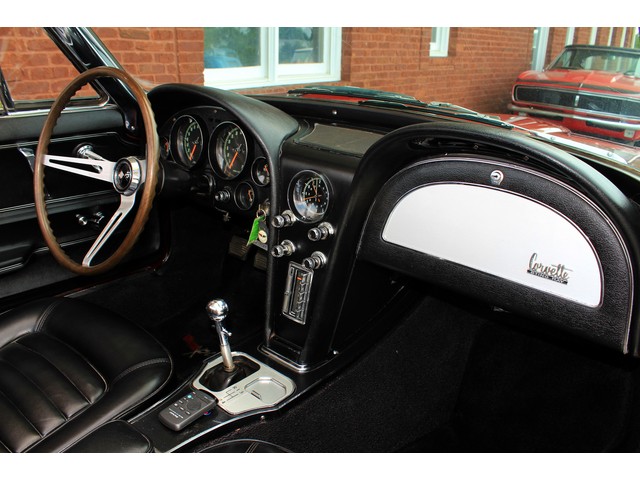 Next, we will take a look at the interior of the ’66. It is all correct down to the rose wood wheel. The seats, carpet, and door panels all look good and are done in black. An aftermarket stereo and speakers were added and custom fitted to keep it appearing all original at first glance. As a whole the interior is very neat and clean.