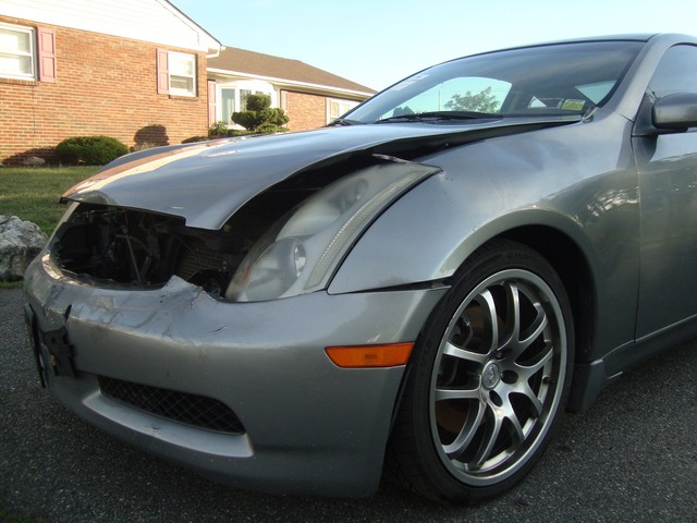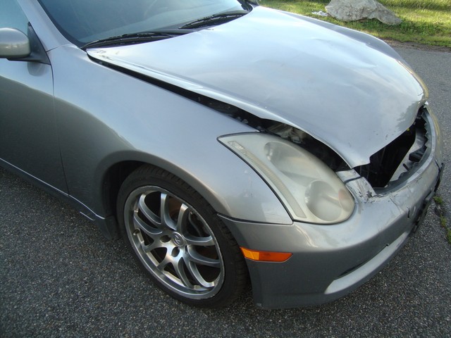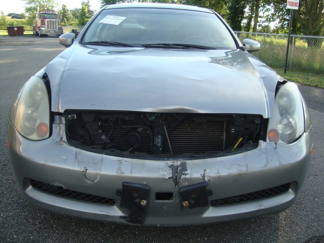 As seen in the pictures down below this nice looking 2005 Infiniti G35 Coupe Automatic has sustained very light front end damage. This vehicle was directly purchased from insurance auctions for resale in the condition you see it on the pics. No middle man involved. We have the salvage certificate of title (no-liens) at hand and ready to transfer to the new owner. Such vehicles can be legally returned back to the roads after repairs and your state motor vehicles inspection. Damaged areas are clearly shown in the pictures below. Looks like it was a high front end damage and the impact was above the front bumper assembly. The front bumper rebar is fully in tact and no damage observed to the front frame rails. Windshield is cracked due to the hood pushing up against it. All airbags are good. The plastic engine cover that goes on top of the engine is missing but rest assured that there is No engine damage and engine runs great! No suspension damage observed. The great news is that the car starts, engine runs great, goes into gear and we are able to drive it around within our lot. All airbags are good. Interior is fully in tact and has great looking black leather as seen in the photos below. Overall, it should be a fairly easy fixer with limited parts and very light body work. Again the hit was right above the bumper assembly hence there is no frame damage to the front frame rails and bumper rebar assembly is fully in tact. There is no pulling or front end alignment issues to worry about, just get the front damaged components replaced and get this G back on the roads. Please see many pictures posted down below for overall condition of the vehicle and feel free to ask any questions you might have.