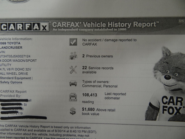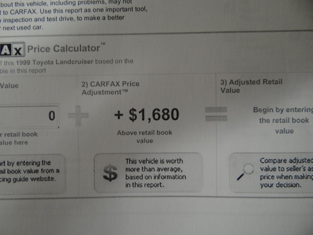 YOU ARE VIEWING A STUNNING LOW MILE 1999 TOYOTA LANDCRUISER! 4X4! NO RESERVE AUCTION! CARFAX CERTIFIED! NO ACCIDENTS! VERY WELL DEALER MAINTAINED WITH ALL RECORDS SHOWING! TIMING BELT REPLACED AT 84,599 MILES AT TOYOTA DEALER! ALWAYS DEALER SERVICED! RECENT NEW TIRES! READY TO GO! WE ALL KNOW HOW SOLID THESE ARE SO I WILL NOT GET INTO A LONG STORY! THE CONDITION IS EXCELLENT FOR ITS AGE! SOME MINOR SCRATCHES ON FRONT BUMPER AND I NOTICED TO SMALL DOOR DINGS AND THATS ABOUT IT! PAINT SHINES LIKE NEW! COLOR IS CALL CHAMPAGNE PEARL! THIS LANDCRUISER IS CLEAN! INTERIOR SHOWS VERY WELL! VERY MINIMAL WEAR PRESENT BUT OVER ALL LOOKS EXCELLENT! EVERYTHING WORKS GREAT! HAS LOCKING DIFFERENTIAL OPTION! 4X4 WORKS PERFECT! DRIVES LIKE NEW! DONT MISS OUT ON THIS LOW MILEAGE RARE FIND! NOT EASY TO COME BY LIKE THIS ESPECIALLY WITH THESE GREAT SERVICE RECORDS! FLORIDA OWNED AND RUST FREE! ONLY 2 OWNERS SINCE NEW! 7 DAYS NO RESERVE AND THE HIGHEST BIDDER WILL OWN THIS BEAUTY! ABSOLUTE SALE! IF YOU HAVE ANY QUESTIONS PLEASE CONTACT US AT 305-345-8318 OR 305-200-9433. FOR GREAT SHIPPING DEALS JUST CALL OR EMAIL ZIP CODE! FREE AIRPORT PICK UP! |