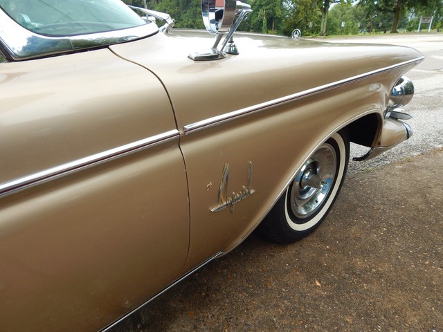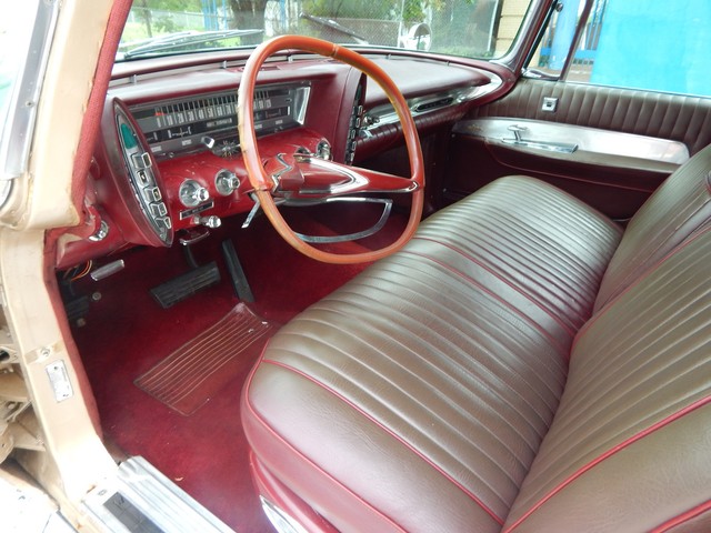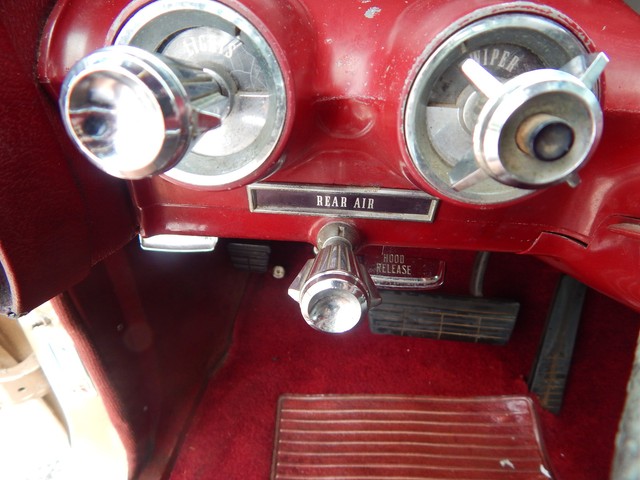 WOW! The Chrysler Imperial, which was hailed by Chrysler as “The Finest Car America Had Yet Produced”, was made in limited numbers and was Chrysler’s interpretation of a true luxury automobile. This Chrysler Imperial is a smooth ride! Specifications include a 413 cubic inch V8 and an A727 torque flight three-speed automatic push button “typewriter style” transmission. On top of its massive size, this vehicle really captures the eye with a square steering wheel, unique pedestal headlights and gun sight tail lights. This 1962 Imperial has Power Windows and a Rear Air Feature, which is very unique for a classic automobile like this. The A/C is currently non-functioning. With a gold exterior and Red Vinyl interior, this striking vehicle is a true land ship boasting a 129 inch wheel base for the smoothest of rides. Don’t pass up on the opportunity to own a piece of American History with this great investment!