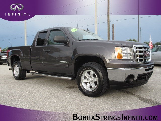 Z71 4X4!!!!From city streets to back roads, this Gray 2011 GMC Sierra 1500 SLE plows through any turf. The tough Gas/Ethanol V8 5.3L/323 engine delivers mind-blowing torque anytime, anywhere. Own the road in this vehicle. It has the following options: Battery, heavy-duty 600 cold-cranking amps maintenance-free with rundown protection and retained accessory power, Headliner, Opal Gray-colored cloth with matching retainer moldings, Seat adjuster, manual lumbar control on the driver-side, Transmission, 4-speed automatic, electronically controlled with overdrive and tow/haul mode (On Crew Cab models, requires (L20) Vortec 4.8L V8 SFI Flex-Fuel engine. Not available on T*10953 models.), Exhaust, aluminized stainless-steel muffler and tailpipe, Air bags, head curtain side-impact, front and rear outboard seating positions with rollover sensor (Head curtain side air bags are designed to help reduce the risk of head and neck injuries to front and rear seat outboard occupants on the near side of certain side-impact collisions. Always use safety belts and the correct child restraints for your child's age and size, even in vehicles equipped with air bags. Children are safer when properly secured in a rear seat in the appropriate infant, child or booster seat. See the Owner's Manual and child safety seat instructions for more safety information.), Remote vehicle starter prep package includes Remote Keyless Entry with 2 transmitters, panic button and content theft alarm (To enable remote start capability, new key fobs and vehicle reprogramming are required. Please see dealer for details. Remote Keyless Entry does not lock/unlock tailgate.), Windows, power with driver Express-Down, Windows, power, rear access door (Requires Extended Cab Models.), Spare tire lock keyed cylinder lock that utilizes same key as ignition and door. Stop by Bonita Springs Infiniti located at 28480 S Tamiami Trl, Bonita Springs, FL 34134 for a quick visit and a hassle-free deal!