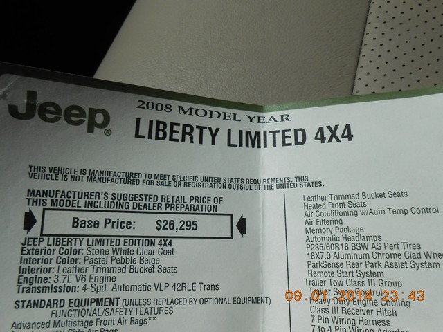 2008 Jeep Liberty Limited 4X4 W/Navigation, Sunroof, Premium Sound system, Factory Towing Package, Chrome Wheels and much much more. This vehicle is clean as a pin and you won't find one in nicer condition. The vehicle is a one owner and has a clean Car-fax! Please call direct at 863-412-4902 for your best deal!