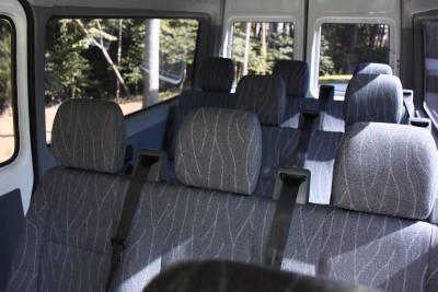 There are three rows of seating and the van will carry up to 10 people including the driver.