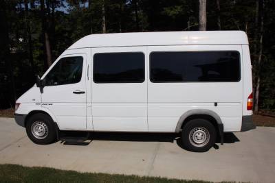 I am selling a 2003 Freightliner Sprinter 2500 Passenger van with just under 65,000 miles. The van has power windows, power locks, cruise control, factory stereo, REAR AIR CONDITIONING, SUPER HIGH CEILING, and the tires have approximately 40 to 50% tread left. This van has the highly acclaimed Mercedes inline 5 cylinder turbo Diesel engine that will get between 20-23MPG! The van is in very good condition and runs and drives great. I just had the oil and filter changed (synthetic) so it's ready to go! There exterior and interior are in great condition and the van has no smoke or other foul odors.