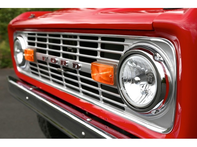 To make our Broncos safer and easier to drive we have added our light package. This consists of front H4 headlights with their own stand alone wiring harness, LED Tail Lights with new lenses and new marker lights. The H4 headlights have 12V 60/55 watt high efficiency white halogen bulbs. These are extremely bright offering new car brightness and reliability to your classic Bronco. The LED tail lights are easily seen in any light condition and especially at night. The new marker lights are crystal clear and bright. This lighting package not only makes the Bronco look great, it makes it a lot safer to drive.
