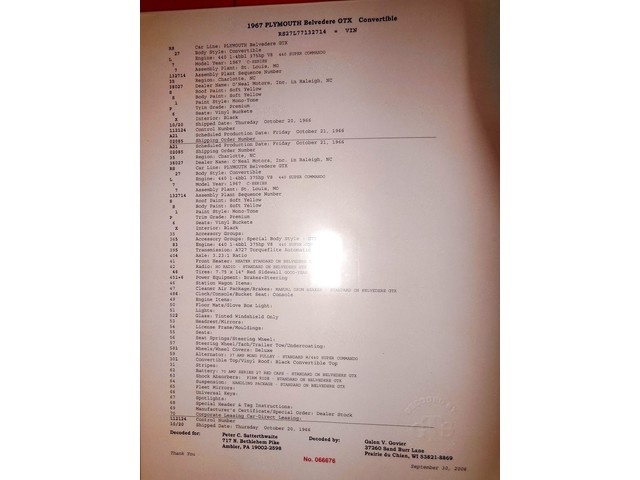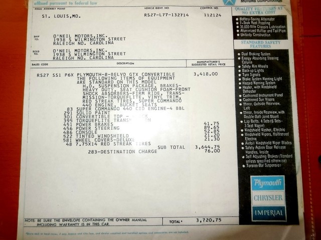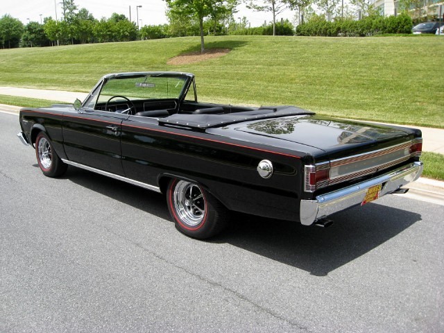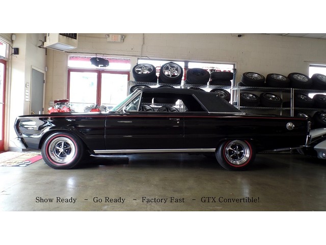 Beautiful triple black, 1 of only 680 fully documented GTXs, build sheet, Galen Govier registry, fender tag, matching #s 440cid @ 375hp SupercommandoV-8, matching #s Torqueflite trans, 8 rear w/ 3.23 ratio, fresh mirror finish black paint, black bucket seat interior w/ factory console, brand new power black convertible top w/ matching boot, Magnum 500s w/ redline tires, ceramic coated exhaust, power brakes, power steering, only 3 owners, 2nd owner for 28 years! Spectacular!