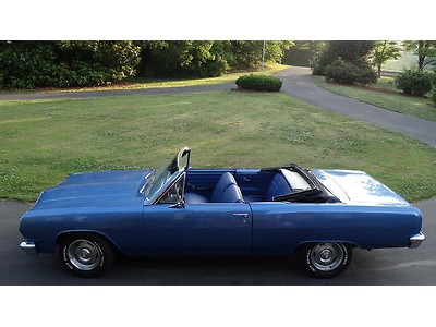 FOR YOUR CONSIDERATION: I have for sale a good looking driver quality 1965 Chevelle convertible. Its metallic blue paint looks and shines good, the blue interior decent, the Turbo 350 automatic transmission shifts good, the 350 cubic inch engine runs good.