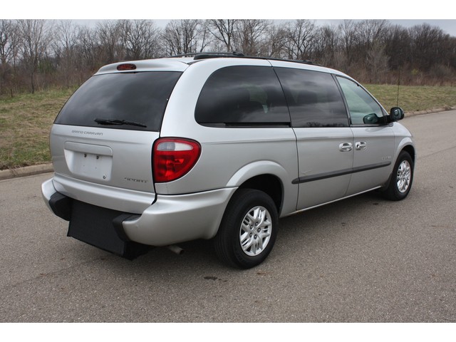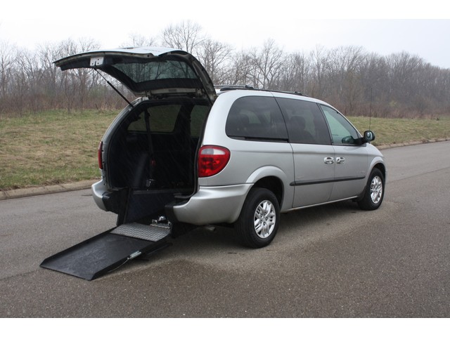 This 2001 Dodge Grand Caravan has a rear entry conversion that will accommodate 1 wheelchair and up to 5 others. This van was built built for the bigger family or transport company. It has low miles and is in good overall condition.The rear entry conversion offers plenty of headroom for most wheelchairs and scooters. The manual ramp offers dependability and low maintenance.