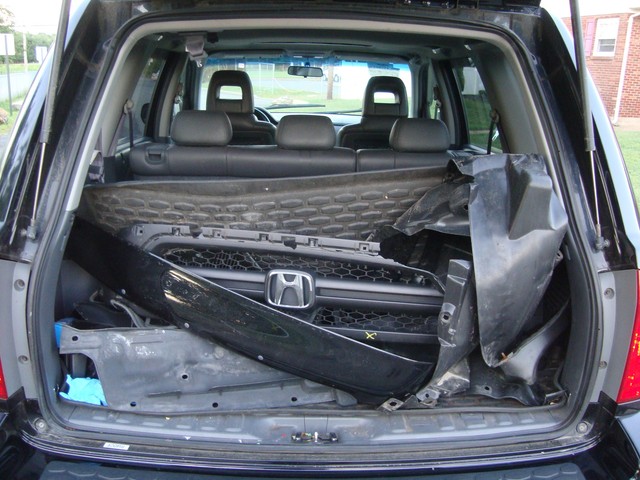 As seen in the pictures down below this nice looking 2005 Honda Pilot EXL AWD with Navigation only 68k miles has sustained very light front end damage. This vehicle was directly purchased from insurance auctions for resale in the condition you see it on the pics. No middle man involved. We have the salvage certificate of title (no-liens) at hand and ready to transfer to the new owner. Such vehicles can be legally returned back to the roads after repairs and your state motor vehicles inspection. Damaged areas are clearly shown in the pictures below.Looks like it was a high hit to the center grille area near the right headlight. The front bumper metal rebar is fully attached. Front frame rails look straight and not pushed back or swayed. There is no damage to the fender apron areas and looks like the fenders were hand removed by the insurance adjuster/body shop during inspection of the vehicle after the accident. Headlights are in tact but mounting tabs are broken on the right one. The radiator/condensor has a dent on the right side but no leaks. The radiator still has fluid and car was ran over 30 minutes and no leaks observed. AC blows cold air! The great news is that the car starts, engine runs great, goes into gear and we are able to drive it around within our lot. No major mechanical damage observed. All glass good. All airbags good. No suspension damage observed. Overall should be an easy fixer with easy to get minimal parts and very light body work. Get used parts here on ebay or at online junk yard website car-part.com. Only 68k original miles! Top of the line EXL AWD model, Comes well equipped with almost all available options such as the Factory Navigation, Heated Leather seats, side step bars, Power glass sunroof, 3rd row seating (7 passengers in total), CD, and like new tires. Overall car looks to be well maintained. Overall exterior in good condition with some light scratches and touch up paint on the right rear passenger door. See below photos for overall condition and please ask questions before making a purchase and not after.
