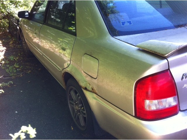This 2002 Mazda Protege is being sold as is, for parts. Some parts have already been removed (dash board, drivers door does not shut, radio and more. See pictures.)