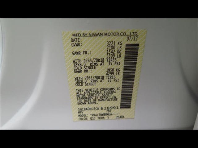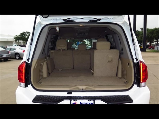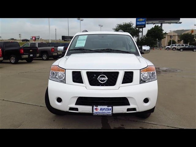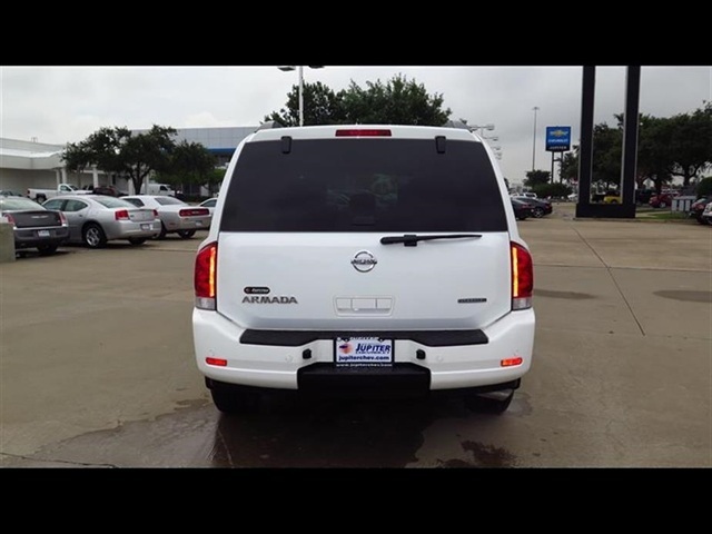 Catch a glimpse of everything with expansive visibility. With such good visibility, it's like having your very own observation deck. If you demand the best things in life, this outstanding 2012 Nissan Armada is the low-mileage SUV for you. It is nicely equipped with features such as 2.937 Axle Ratio, 3rd row seats: split-bench, 4-Wheel Disc Brakes, 8 Speakers, ABS brakes, Adjustable pedals, Air Conditioning, AM/FM radio, Anti-whiplash front head restraints, Automatic temperature control, Bodyside moldings, Brake assist, Bumpers: body-color, CD player, Cloth Seat Trim, Delay-off headlights, Driver door bin, Driver vanity mirror, Dual front impact airbags, Dual front side impact airbags, Electronic Stability Control, Four wheel independent suspension, Front anti-roll bar, Front Bucket Seats, Front Center Armrest, Front dual zone A/C, Front reading lights, Fully automatic headlights, Heated door mirrors, Illuminated entry, Jupiter Advantage, Leather Shift Knob, Low tire pressure warning, MP3 decoder, Occupant sensing airbag, Outside temperature display, Overhead airbag, Overhead console, Panic alarm, Passenger door bin, Passenger seat mounted armrest, Passenger vanity mirror, Power door mirrors, Power driver seat, Power steering, Power windows, Radio: AM/FM/In Dash 6CD/MP3 Capability, Rear air conditioning, Rear anti-roll bar, Rear audio controls, Rear reading lights, Rear seat center armrest, Rear window defroster, Rear window wiper, Reclining 3rd row seat, Remote keyless entry, Roof rack: rails only, Security system, Speed control, Speed-sensing steering, Speed-Sensitive Wipers, Split folding rear seat, Steering wheel mounted audio controls, Tachometer, Tilt steering wheel, Traction control, Trip computer, Variably intermittent wipers, and Voltmeter. This Armada will save you money by keeping you on the road and out of the mechanic's garage. Ask us about the free lifetime powertrain limited warranty, alloy wheel protection, door ding protection, windshield repair, interior repair protection, $500 additional trade-in appraisal, Jupiter's best value guarantee, free yearly appraisal and safety inspection that come included with every new vehicle purchase.