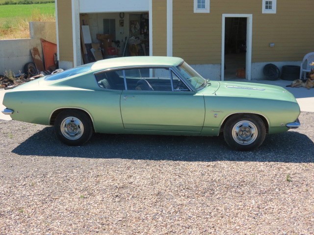 1968 Barracuda fastback 340 formula S surviver The big news in 1968 for the Barracuda was a new selection of engines. The Formula S car came from the factory with the 275 HP 340 4 Barrell power plant! Now for all of you big block fans the 340 Cuda had a faster 0 to 60 time as well as the quarter mile!! The 340 had it all performance updated suspension it was the all around road car. According to the trim tag this car came with 340cid 4-bbl HP V8 727 three speed auto trans e70x14 red side wall steel belted 3.23 rear axel Deluxe trim grade green vinyl bucket seats Avacodo green metalic paint The 340 was produced in LA and the car was assembled in Hamtramck, Michigan This car has spent most of its life in California. The current owner has had the car for over 9 years hoping to give it some attention. He has relized with all of his obligations this is not going to happen. This Cuda is a numbers matching car including the carb, dist, rear end, hp exhaust manifolds and X heads! The cuda has had one repaint in its life and still ratains all of the original body panels. I looked all over and this formula is vertually rust free! Nice floor pans, trunk pan quarters, fenders. The only area that will need some attention is the driver side rear quarter at the bottom. It will need a small patch. The mileage is believed to be original. The 340 was just started after many years and runs strong, the transmission shifts smooth. This is the first year 340 Barracuda with the formula S package! Yes they are very scarce and being bought up by collectors and restorers. Here is your chance to own one of these rare cars! Please pay close attention to all of the 100 photos they will give you an accuarate assement to the great condition this car is in. I can be reached by email or at 208-250-4454 Thanks and enjoy the auction.