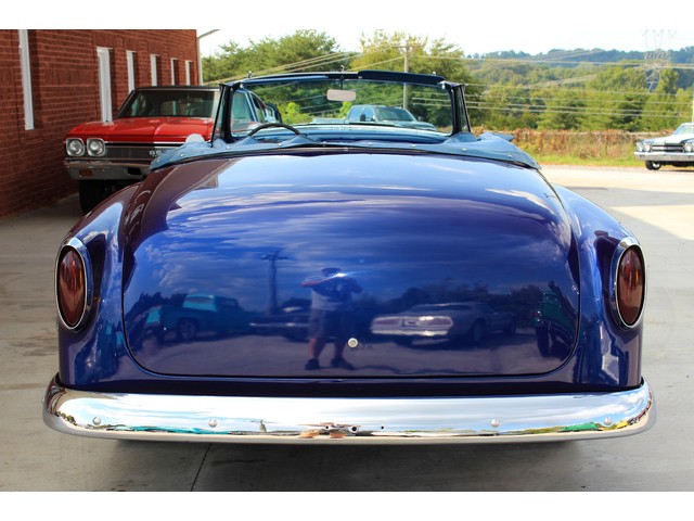 Next, we will take a look at the interior of the Convertible. Everything on the inside looks good with the correct seats that have been covered in a two tone blue vinyl that accents the exterior nicely. They stayed with the same colors for the door panels with a dark blue carpet. The dash looks stock with only a set of under dash gauges and tach. They also upgraded the radio to a kenwood and added a Tilt column and a custom grip wheel.