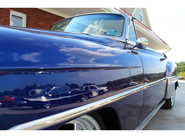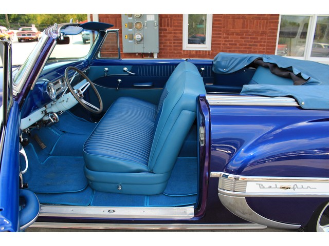 We will start off with the exterior of the Bel Air. The body is laser straight with great lines. The stainless down the side looks very good as well as the stainless around the windshield. The bumpers are new as well as other chrome. They installed new weather stripping and seals. The radar Blue Paint is a GM color and when you add the white top it gives it a killer look. The paint has a deep rich shine that shows very well you can see the hours that were spent buffing and polished to ensure a slick finish. The final exterior touch is a set of Billet Specialty Wheels and new tires.