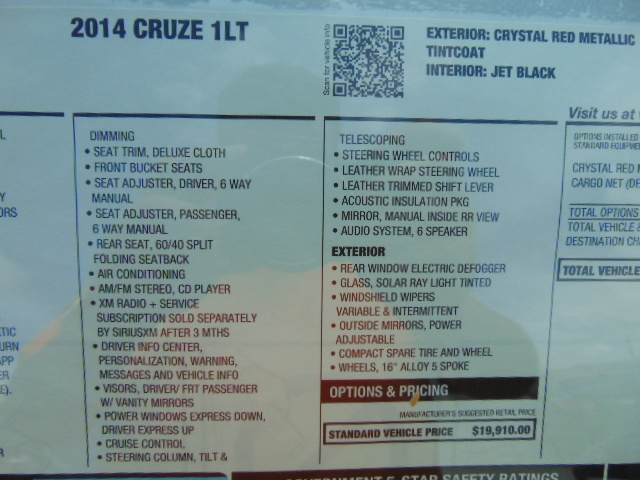 $6,500 OFF - *BRAND NEW* - 2014 CHEVY CRUZE *LT* - CRYSTAL RED METALLIC