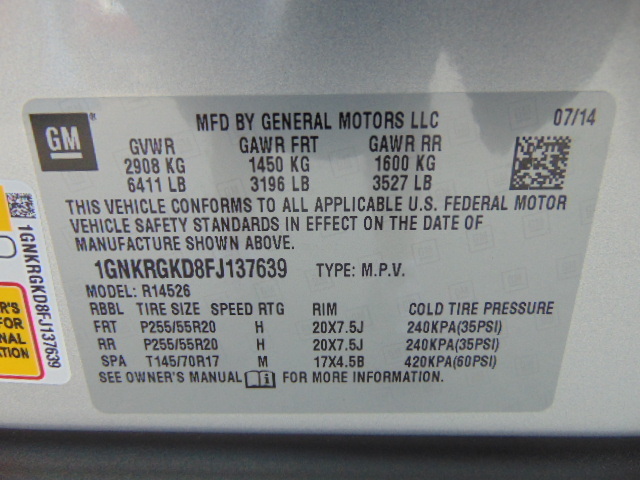 • VIN: 1GNKRGKD8FJ137639