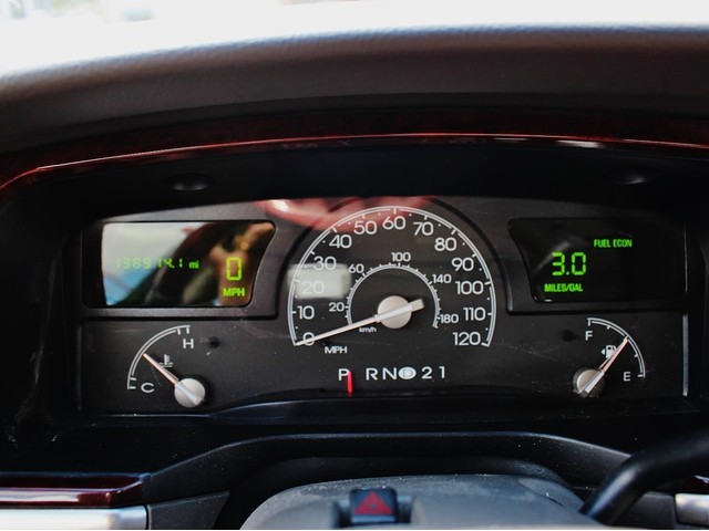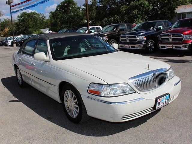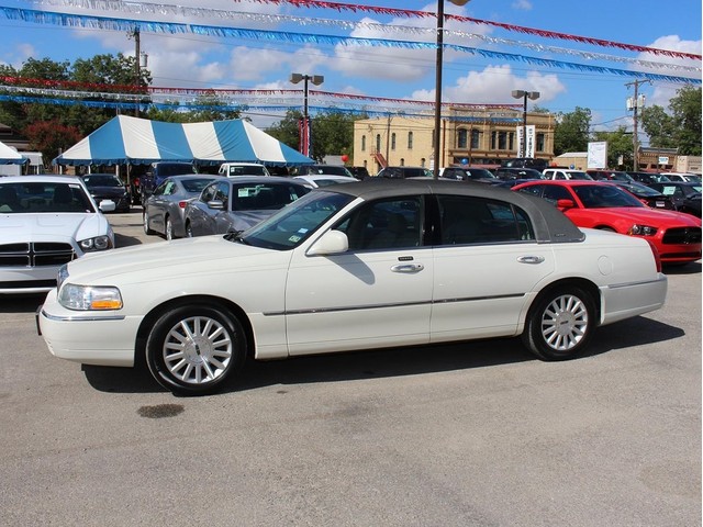 Purchase this classy white 2003 Signature Lincoln Town Car at a great deal! This big body sedan is loaded with gray leather interior, wood-grain accents, a stylish charcoal hood, CD, power seats, alloy wheels, key-less entry, cruise control, dual air bags, & much more. This is a smoke free car & the interior is absolutely free of rips, odors, or abuse. This vehicle's powerful 4.6 LTR V8 engine is in perfect working condition for the smoothest ride of your life! There are no noticeable dings on the exterior, & the shiny extra clean finish makes this used auto look like new. The tires have at least 3/4 of their life span left, & the mileage represented is 100% accurate. With a smooth shifting automatic transmission & all power equipment working properly, each ride will be one of comfort & pleasure!