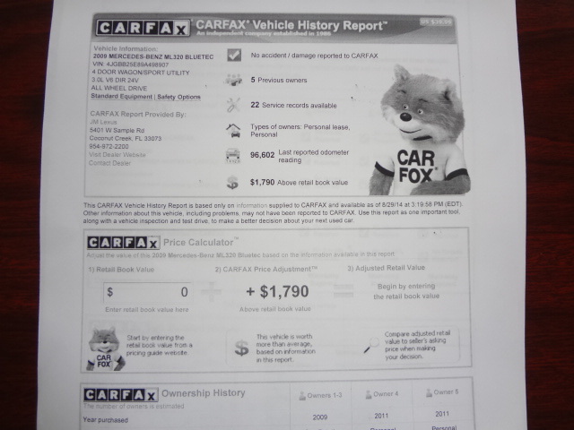This 2009 Mercedes ML 320 Blutec AWD Diesel is fully equipped with all the options including: Navigation, Back Up Camera, Premium Soundsystem, Running Boards, Tan Leather Interior, Tow Package, Blutetooth, Steering Wheel Controls, Power Sunroof, Rear Power Outlet, Premium Alloy Wheels, and Much Much More. This Mercedes is a real beauty. The engine and transmission are running smooth. This vehicle drives beautifully down the road. The exterior is immaculate. The paint shines like new and the body is super straight. The interior is pristine. The leather seats and carpet are very fresh. The cockpit is very inviting. The vehicle has the original owner's manuals to go with it as well. It's all there. There is only normal wear and tear for the year and mileage. If you are looking for a great deal on an ML Diesel, this is the one. Please let us know if you have any questions or concerns. We are happy to help at any time. We will price this vehicle to sell so don't hesitate to call us with your offers. Please call Jeff or Ken at 954-561-2499 or email us usedcars@suprememotorsfla.com.