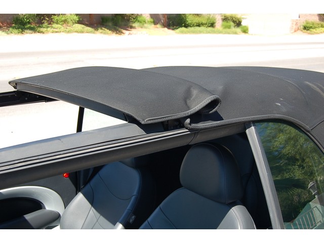 The hood has been repainted but not replaced and the convertible top has some wear marks from being folded down. The top has three positions, fully open, fully closed and partially open where it is positioned like a large sunroof (see pictures). The interior is in excellent condition showing no wear. The radio is an AM/FM CD with the optional HARMON/KARDON system which helps give clear sound even with top down motoring.