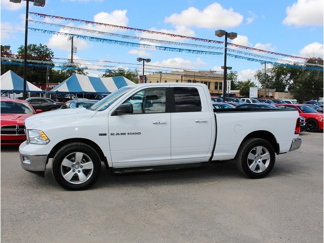 Purchase this bright white 2011 Ram 1500 Lone Star Quad Cab pickup at a great deal! This awesome Ram features a bed liner, nerf bars, MP3, SIRIUS XM radio, alloy wheels, cruise control, & fold away back seats for storage. This is a smoke free truck & the interior is absolutely free of rips, odors, or abuse. This vehicle's powerful 5.7 LTR V8 HEMI engine is in perfect working condition for excellent towing capacity! The tires have at least 3/4 of their life span left, & the mileage represented is 100% accurate. With a smooth shifting automatic transmission & all power equipment working properly, each ride will be one of adventure & pleasure!