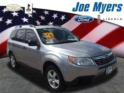 Clean Carfax, Electronic Stability Control, Non-Smoker, ONE OWNER, Remote keyless entry, and Traction control. Easygoing instrumentation. At Joe Myers Ford-Lincoln we take great pride in rigorously inspecting each used car and bringing them current with all of their manufacturers scheduled maintenance. We also take pride in having the cleanest pre-owned cars in Houston, as a matter of fact, almost all of our vehicles come with new tires. We invite you to come check them out yourself and discover the Joe Myers Ford-Lincoln difference, where our salesmen aren't paid on commission but rather on whether you are satisfied customer. Tired of the same tiresome drive? Well change up things with this good-looking 2010 Subaru Forester. Awarded Consumer Guide's rating as a 2010 Recommended Compact SUV. The engine and transmission are both silky smooth, just like an SUV with such low miles should be. It's really no surprise. Joe Myers Ford-Lincoln proudly serving the following communities Jersey Village, Cypress, Tomball, Katy, The Woodlands, Spring, Houston. CALL JOE SNOW @ 832-630-9281