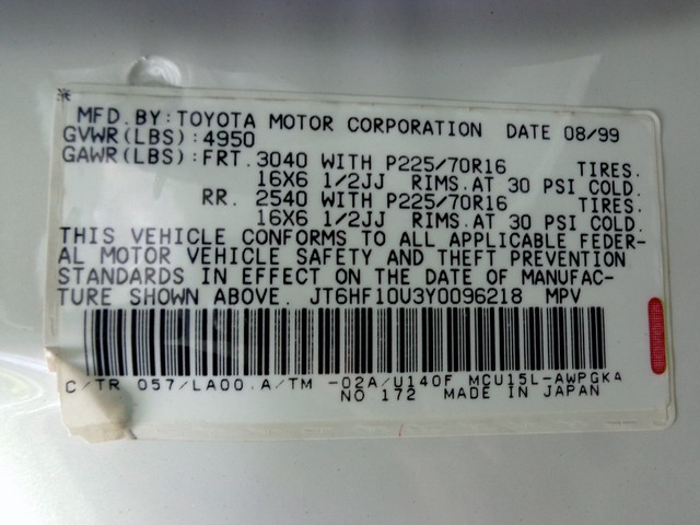 Hello and thanks for stopping by our "No Reserve" auction for this, 1-owner, clean Carfax history, all-wheel-drive, extremely good shape for her year, 2000 Lexus RX 300 SUV with winter package!. Thoroughly inspected, serviced and ready to go! According to the Carfax report below, she is $1140 more than retail book value!! Did you know that the Lexus RX has been the best-selling luxury SUV in the United States since its introduction? She features many creature comforts like, winter package, AWD, 16" alloy wheels that are in above average condition, dual power front seats, driver seat memory and power lumbar, CD changer, rear door child locks, folding rear seats that turn your SUV into convenient cargo space, power sunroof that works perfectly, power windows, mirrors, locks, keyless entry, tinted glass, owner's manuals, 4-wheel ABS disc brakes, rear wiper, tilt, leather, steering wheel, roof rack, rear defogger, dimming rear-view mirror, cruise control, wood interior trim, interior fuel release, first aid kit, tachometer, exterior temperature display, front air bags, spare tire, jack, rear ventilation ducts, power antenna, cup holders, cassette player, good condition tires, clean Carfax, 1-owner and so much more! As you can see in the many detailed photos taken, the "White Pearl" exterior of this RX 300 shines like the Florida sun! Very minor chips, could be touched up, can barely see. The luxurious "Ivory" leather, interior is in good condition, smells and looks clean and fresh. The air conditioning is ice cold and the 3.0L V6 engine runs like a dream, sounds and feels powerful, solid and strong. The 4-speed, automatic, transmission shifts smooth, no hard shifting and doesn't miss a beat. This RX's unibody construction provides a cushioned ride which I found quite unexpected from an SUV. Come take a look! Overall, just a real nice SUV! All of our vehicles are sold with clean titles. Our titles are free and clear of any and all liens. At the time of delivery, we will include any extra keys/remotes that we received for the automobile when we purchased it. High bidder wins it! We also use our detailed pictures as a physical description as well so look at them closely. Be realistic in your expectations. Read our "terms and conditions" below. Pre-sale inspections are welcomed and encouraged. Aside from Ebay's finance, we do offer financing possibilities as well as we do accept trade-ins. Extended warranties are available for specific vehicles, please ask the selling dealer for details. If you have any questions about this or any of my other auctions, please feel free to contact me, Avi Fraser, via e-mail at surewecanmakeadeal@rollingwheelsinc.com or you can call me at 954-527-5522. We are always open to negotiate and 4 SURE, WE WILL MAKE A DEAL WITH YOU!! Thank you for your interest and I look forward to hearing from you. Please visit our location at Rolling Wheels, 125 E. Sunrise Blvd. Ft. Lauderdale, Fl. 33304. We are open, m-f, 9am-5pm. Saturday, 9am-4pm. Closed Sunday and holidays. Here is the link to our online credit application: http://www.rollingwheelsinc.com/ApplyOnline.htm