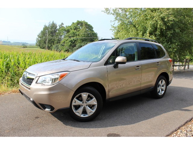 FOR SALE 2014 Subaru Forester 2.5i Premium with LESS THAN 1,000 MILES! Metallic Tan exterior with a Black interior. This car runs and drives perfectly with no issues. The only wrong with this car is the hail dents on the hood, roof, trunk, and a few on the sides. Look closly at the pictures I tried to show all the dents & damage that I found on the car. We are selling the car as is just how we bought it from the insurance company. These dents will in no way affect the performance of the car, making it as good a car as any other on the road. Some of the features include 2 keyless entry remotes, steering wheel controls, cruise, Bluetooth calling, Heated cloth seats, Power driver seat, fog lights, and even a backup camera! Take a look at the interior pictures. I tried to include detailed pictures of all the features. If you want a list of all the Features please call the Subaru Dealer. Sold with a PA Salvage title. Thanks for looking and happy bidding =)