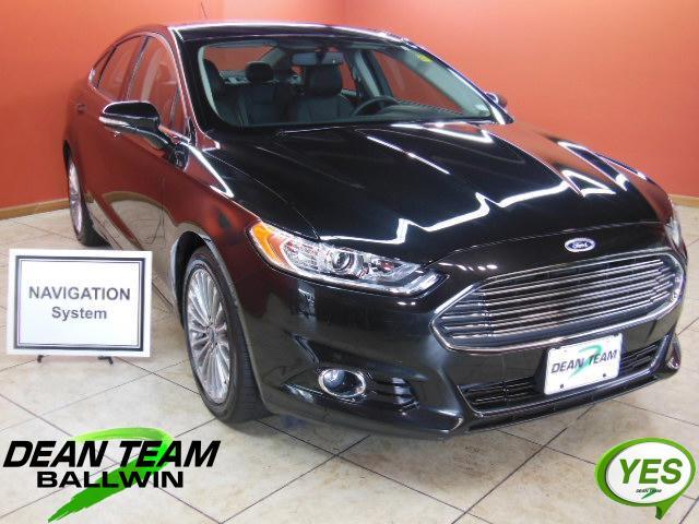 2013 FUSION TITANIUM! LOCAL TRADE-IN! LOW MILES! UNDER FACTORY WARRANTY! NAVIGATION! LEATHER SEATS! BLUETOOTH! FOGLIGHTS! PREMIUM 12-SPEAKER AUDIO!With only 13,519 total miles driven in a little over one year, this 2013 Ford Fusion has low mileage for its age. This car was originally purchased from Lou Fusz Ford. It had only one owner throughout its life. It has been well maintained and remains in like-new condition. It has a clean CarFax history, with no accidents or damage reported. It is also still covered under the remainder of the Ford 3 yr / 36,000 mile factory warranty.Our technicians performed the following services here at the Dean Team: Missouri state inspection, oil and filter, lubed latches and hinges, topped off all fluids, checked tire pressure and coolant. Also, performed a 112 Point CERTIFIED inspection, which includes belts, hoses, brakes, battery, suspension, steering, and exhaust. Everything checked out great.Edmunds.com says: With solid power, excellent fuel economy, provocative styling and enhanced refinement, the 2013 Ford Fusion is a top choice for a midsize sedan. It offers fuel-efficient turbocharged engines; sharp handling; composed ride; quiet cabin; advanced technology and safety features; eye-catching styling.For current specials or to schedule a test drive, please contact us by phone or by using the contact form.The Dean Team Difference* Full disclosure CarFax on every used car* No car goes on our lot until it has been thoroughly checked and serviced* We finance* Certified appraisers on staff to get the top dollar for your vehicle* Free car washes for the life of your car* Free loaner cars in our service department*