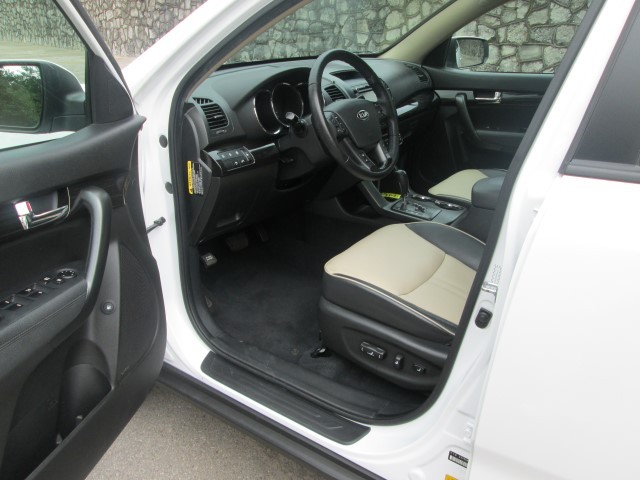 Here is a very nice and neat compact SUV that has 3rd row seating and tons of luxury in a great sized SUV! It is a 2011 Kia Sorento EX V6 that is white with 2 tone graphite with beige inserts and beige piping leather interior. The drivers side bucket seat is power and both front bucket seats are heated! It has Bluetooth for your driving safety! This neat SUV has a Panoramic moonroof and Navigation! The sound system is an Infinity Sound System that has the Nav incorporated into the radio screen. It has factory Chrome alloy wheels riding on what appear to be very good tires! It has all the owners manuals along with both keyless keys with it! I will say it again this is a lot of compact luxury SUV for the $$$! This neat SUV drives out great, looks great along with feeling and looking like has had great care taken on it all of its life!