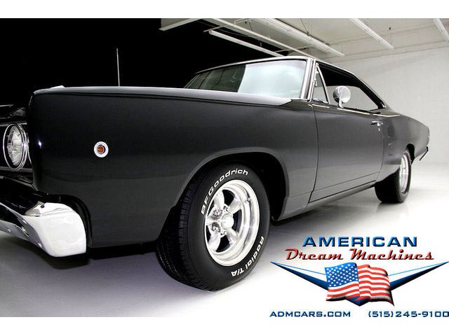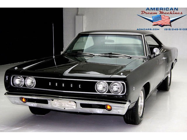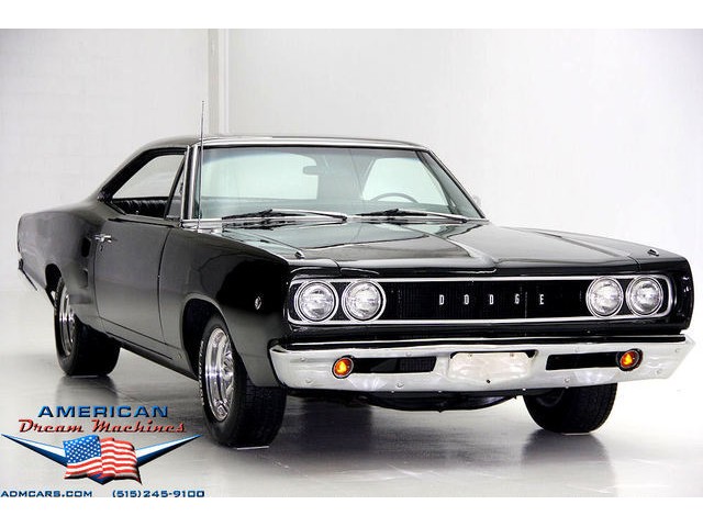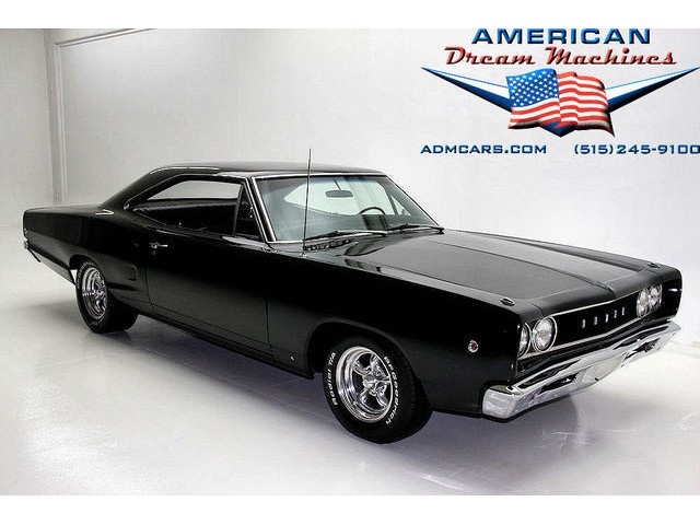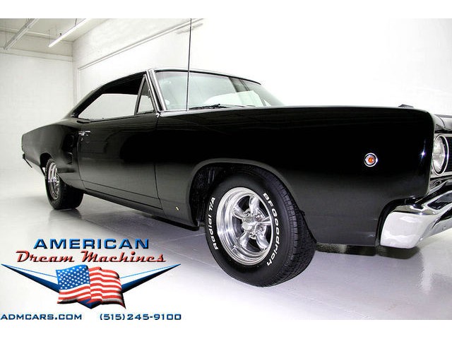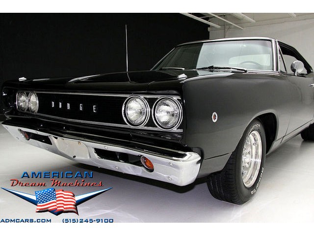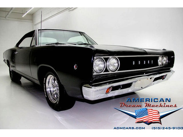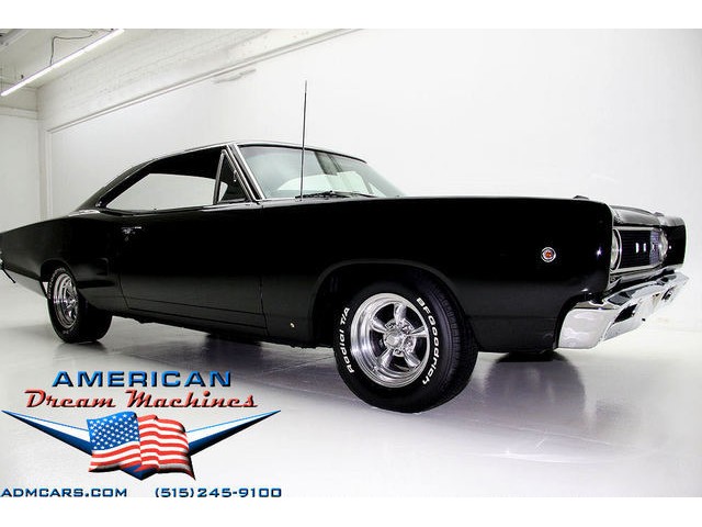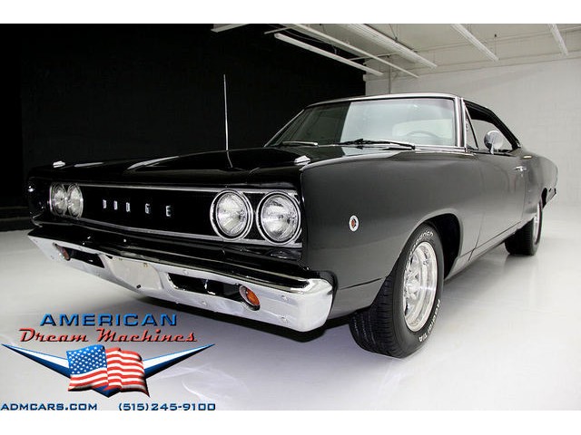 FRESH OUT OF THE BODY SHOP!!! OMINOUS JET BLACK CORONET WITH GORGEOUS CURVES AND A BAD ATTITUDE. BLACK ON BLACK MOPAR STREET BEAST ROLLING ON CHROME AND LOOKING GOOD. Stunning onyx black 1968 Dodge Coronet with a deep black finish laid over a very solid metal body with great body lines. The under body of the car is solid and structurally intact from ron to back. New front and rear bumpers, new windshield and all new weather stripping. The rest of the bright work is very nice and original and shows well. The Black interior looks new and has new door panels, new seat covers, new carpeting, new package tray and headliner. Dash has a new AM FM CD radio. Under the hood is an upgraded 318 with surprising torque, topped off with an Edelbrock aluminum intake and Edelbrock 4 barrel carburetor. It also has a new chrome dress up kit. Driving is a dream with power steering. This Mopar machine is launched by a 727 three speed automatic transmission and backed by a 8 3/4 rear end. Exhaust sounds strong and is running through original cast iron manifold, newer pipes and performance mufflers. The car also has a new fuel tank and rear air shocks. This black beauty is set off with American Torque Thrust with 15 inch BF Goodrich white lettered tires. VIN#WH23F8A107697 Our #1 Goal at American Dream Machines is to make our customers happy with the cars we sell. This is not an easy goal to achieve when selling 40, 50 and 60 year old cars. We highly recommend that ALL CUSTOMERS call our staff and have very detailed discussions regarding overall condition of any classic car they are considering buying. We are located in the center of the Heartland in Des Moines Iowa. Our staff has midwest values and they will make every effort possible to represent our customers best interests and accurately describe the cars we sell. All older cars have older parts. If they had all new parts, they would be new cars ;-) YES, ALL OF OUR PICTURES ARE REAL, ALL THE WAY AROUND!!! Our pictures are taken in our professional photo studio for the best possible lighting and image accuracy to give our customers the most accurate representation of our cars on all sides. (((PLEASE CALL FOR DETAILS))) 515-245-9100 American Dream Machines is located in a 41000 sq. ft. historical Packard Dealership and is one of the largest full service classic car dealerships in the Midwest. We specialize in American Muscle cars with integrity. None of our cars are consigned. All of our cars prices are always listed on our website to show the values of the cars we sell. We usually have at around 80-100 cars in stock at all times. Please call (515)-245-9100 and we will be happy to tell you about our cars. VIEW ALL OF OUR CARS with more pictures at WWW.ADMCARS.COM Des Moines largest classic car dealership, ''Specalizing in American muscle cars with Integrity.'' This vehicle is being sold as is, where is with no warranty, expressed written or implied. The seller shall not be responsible for the correct description, authenticity, genuineness, or defects herein, and makes no warranty in connection therewith. No allowance or set aside will be made on account of any incorrectness, imperfection, defect or damage. Any descriptions or representations are for identification purposes only and are not to be construed as a warranty of any type. It is the responsibility of the buyer to have thoroughly inspected the vehicle, and to have satisfied himself or herself as to the condition and value and to bid based upon that judgement solely. The seller shall and will make every reasonable effort to disclose any known defects associated with this vehicle at the buyer's request prior to the close of sale. Seller assumes no responsibility for any repairs regardless of any oral statements about the vehicle. x - All sales are final so please feel free to do a pre-buy inspection.