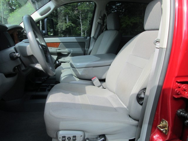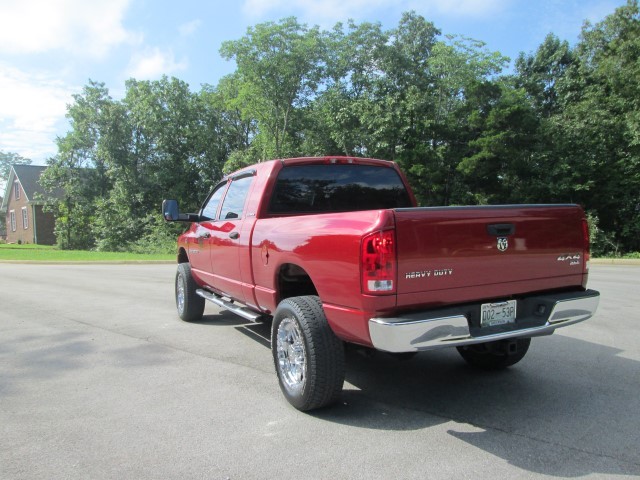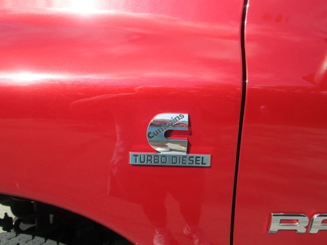 Man if you have been looking for a Dodge Ram SLT 3500 Single Rear Wheel Mega Cab 4 Wheel Drive with the great 5.9 Cummins High Output Turbo Diesel with a 6 speed manual transmission you know how rare that this truck is in any condition! This great truck is gorgeous and everything that has been done to it is in great taste! It is a gorgeous shade of bright red metallic (I think Inferno Red Metallic) with gray cloth interior, the front seats are 40/20/40 with a power driver's seat and both sides recline. There are many neat and tasteful upgrades to this truck, I will start with the inside, it has a Kenwood Radio / Navigation unit that is a pop up style and is very good! It has an EDGE programmer that you can really appreciate when you step on the go pedal! Speaking of stepping on the go pedal it has a great sounding aftermarket exhaust system that amplifies that great "Hummin Cummins" sound and it is just right, you will love the exhaust note, deep with a great throaty tone! It is in unbelievable condition looks wise along with driving out great, it is very tight and extremely powerful! The drivetrain is very tight and does not feel abused at all! The suspension feels tight along with the body feeling tight also with no noticable rattles! It has a set of 20" ION chrome alloy wheels riding on Raised White Letter GoodYear Wranglers that really set it off! In the bed it has a bed liner and a B&W flip ball for your towing needs! This neat truck has a clean Car Fax Report and again you can not believe your eyes when you look at it, it is great!