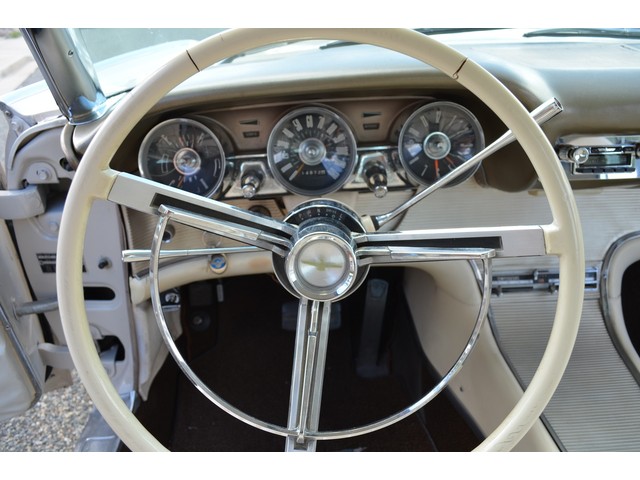 The new upholstery is correct and very serviceable. Also installed were new carpeting and headliner. While the steering wheel shows some cracks the dashboard looks nice with no cracking. Also added is am AM/FM T-Bird stereo (and the original AM radio is included).