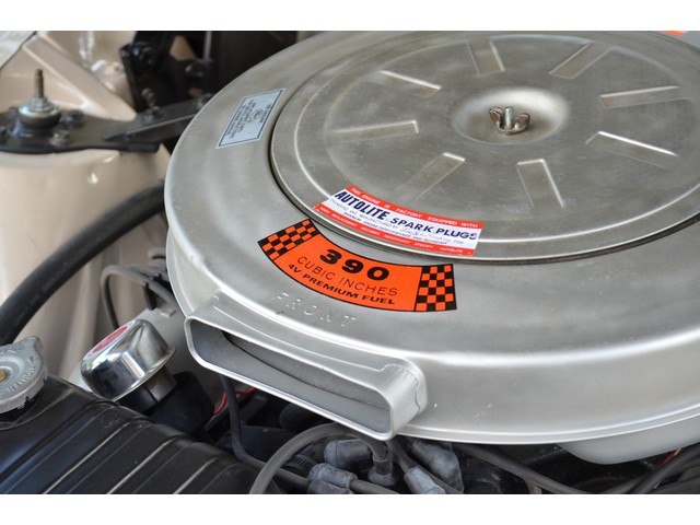 The engine has been thoroughly rebuilt and the engine and engine compartment have been painted and detailed to a concours level. Review the photos carefully to see the results of the huge investment to make it showroom new and correct. The venerable 390 cu in V8 has a new Edelbrock carburetor and a recently installed upgraded exhaust system. There are a mere 1,500 miles on the rebuilt engine and transmission.